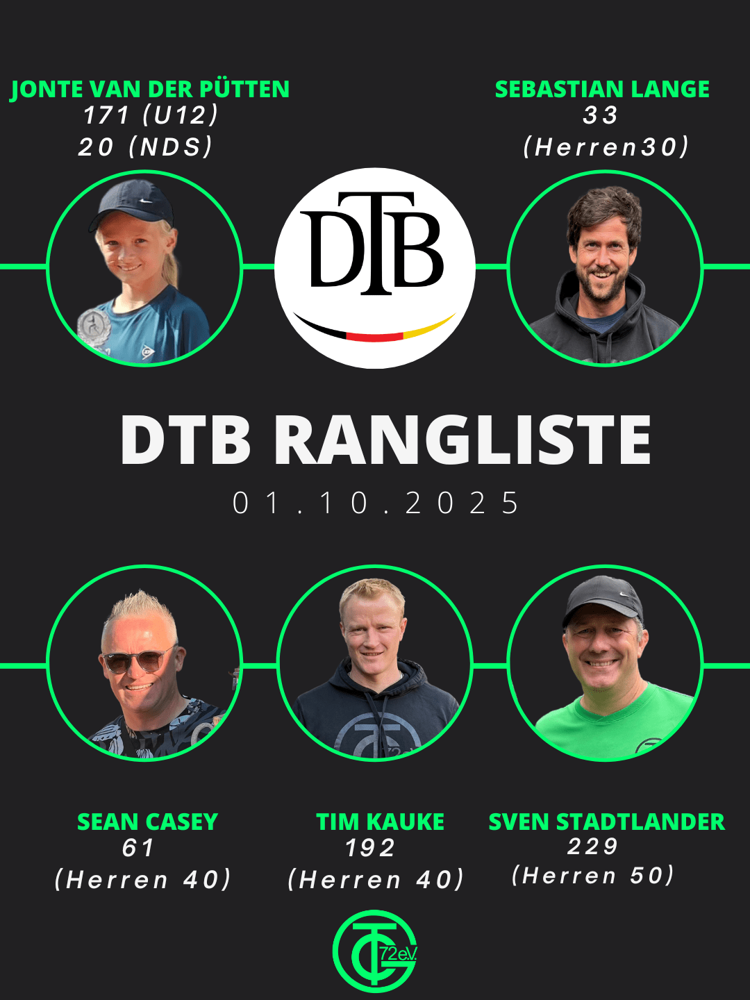 Fünf GTC-Spieler in der neuen DTB-Rangliste