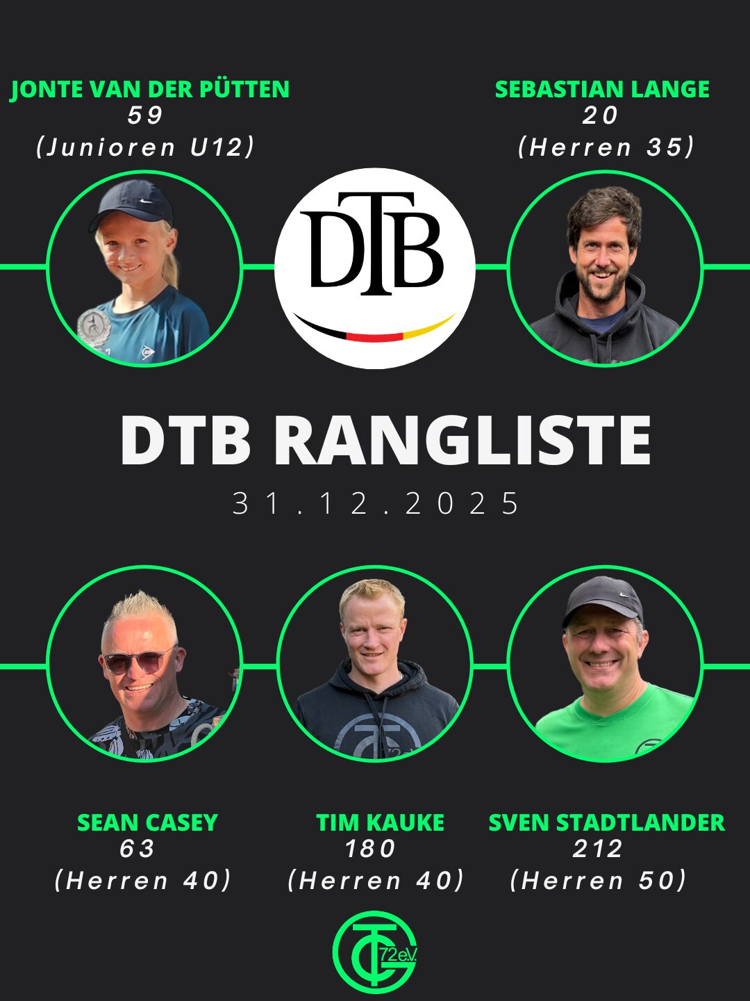 Zum Jahresabschluss zeigt sich einmal mehr die sportliche Stärke des Goslarer TC: Gleich fünf Spieler unseres Vereins sind in der aktuellen DTB-Rangliste vertreten. Eine schöne Bestätigung für konstante Leistungen, viel Trainingsfleiß und großen Einsatz auf dem Platz.